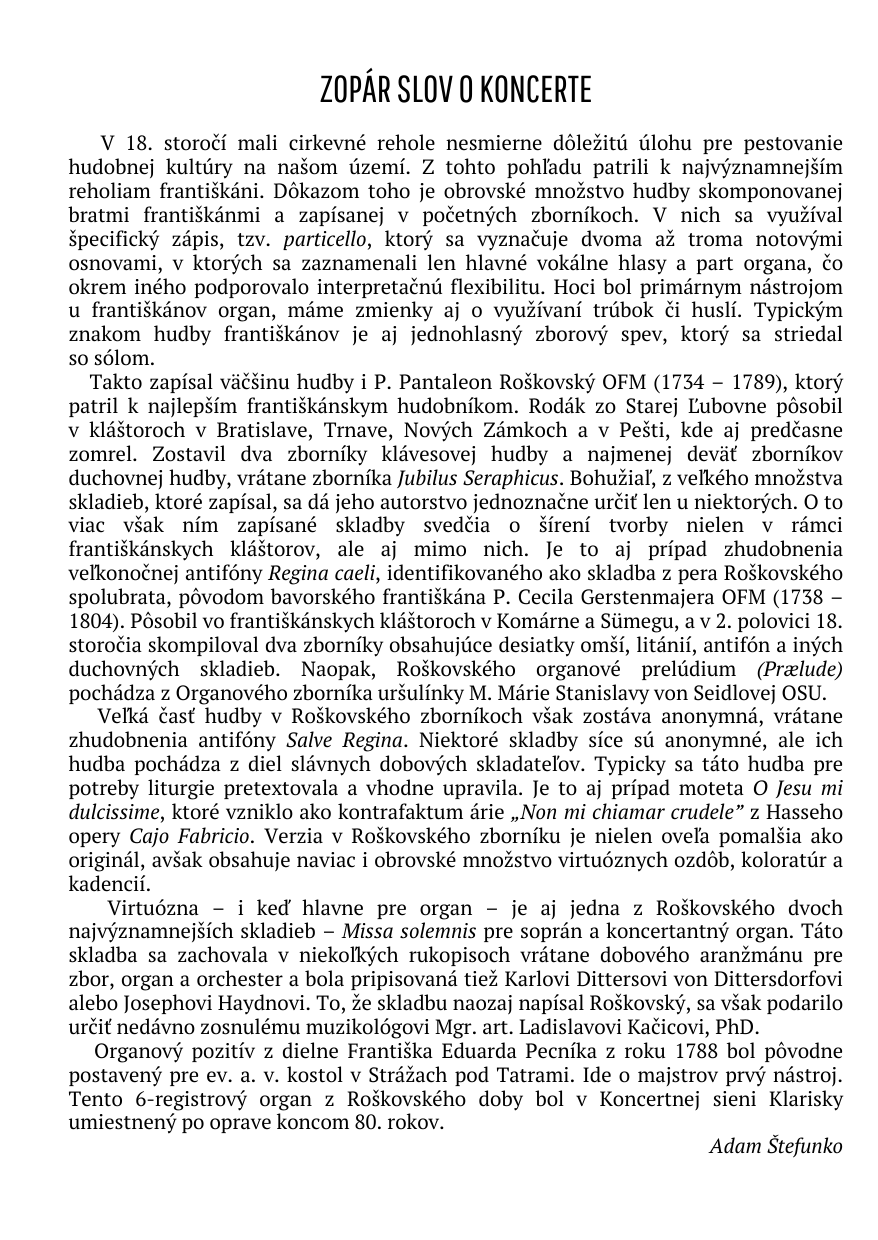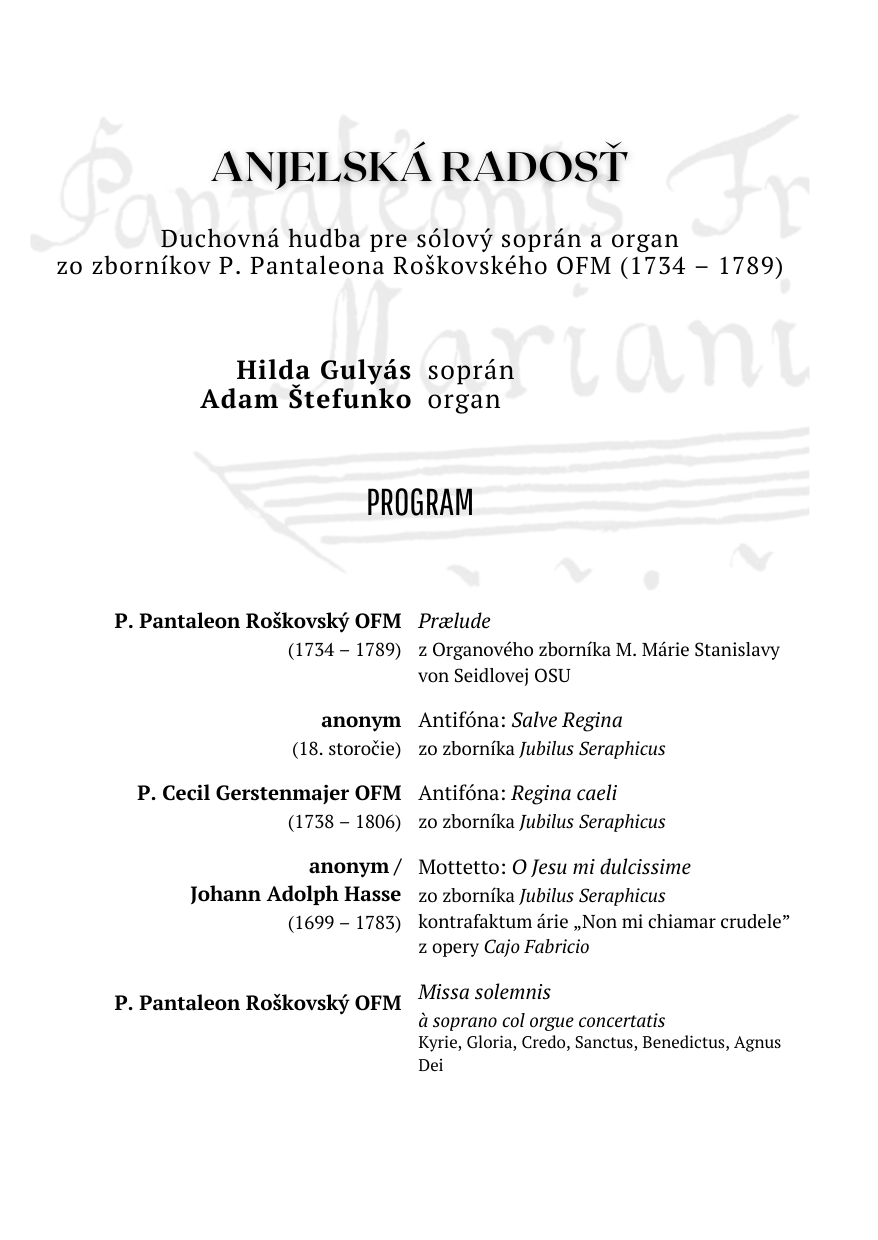 Srdečne pozývame na koncert z tvorby pátra Pantaleona Roškovského.